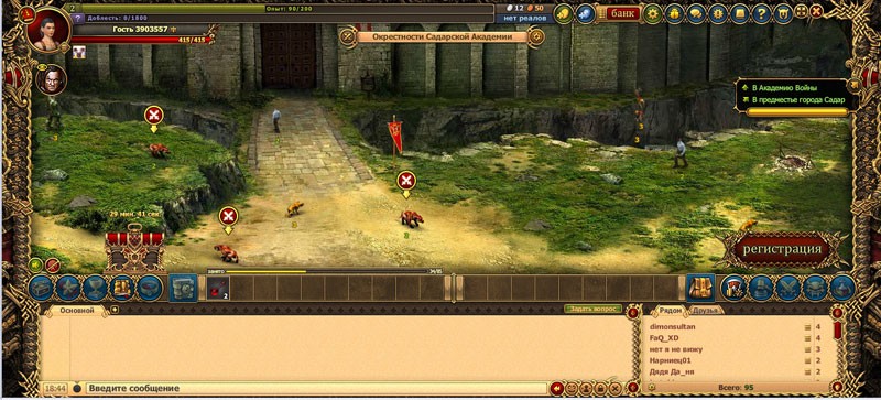В игру можно начать сразу даже не регистрируясь, чтобы попробовать, как выглядит игра. Нам предложат выбрать расу и пол, после чего мы сразу же попадаем в игру, где проходит обучение.