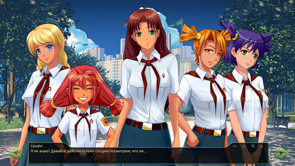 Бесконечное лето Необычная визуальная новелла от российских разработчиков с интересным сюжетом и множеством путей развития. Главный действующий персонаж (Семён) – одинокий парень, который увлечен интернетом и анонимными имиджбордами. Мистическим образом, он попадает в советский пионерлагерь, где встречает множество других персонажей. Стоит отметить, что все персонажи в игре имеют русские имена. В официальных версиях были вырезаны сцены, любовного характера, но их можно вернуть, если поставить нужные патчи.