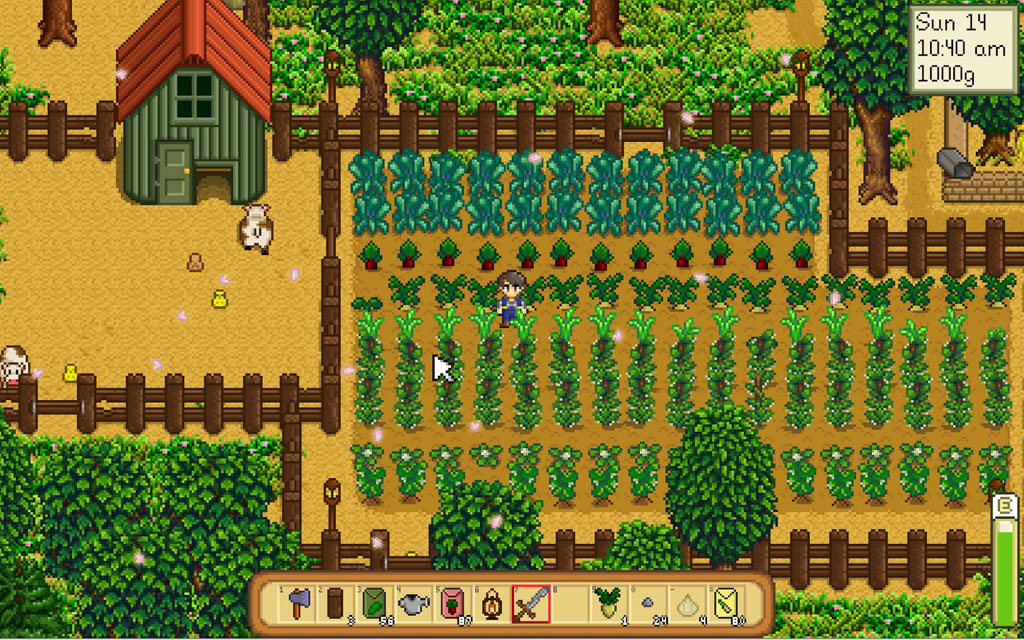 Строго говоря, Stardew Valley – это не совсем симулятор фермы. Главное здесь – управление непоседливым внуком, а то, чем он займется на этот раз – решать игроку. На выбор несколько занятий, среди них и благоустройство полей, и ремесло рудокопа, и рыбалка. События разворачиваются в обширной долине, населенной более чем 30 персонажами. С каждым из них придется общаться по ходу прохождения.