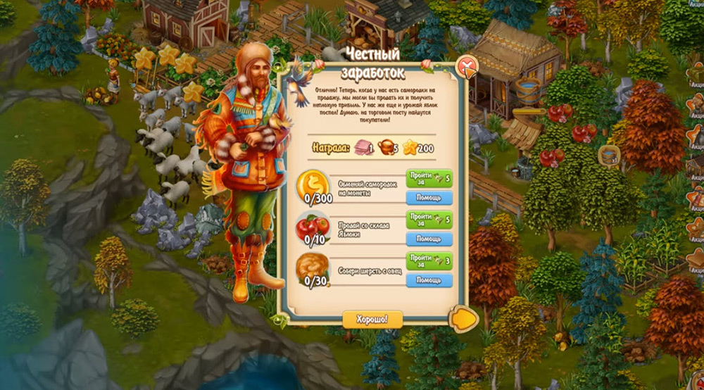 Большинство заданий в игре это сбор фруктов, яиц, молока и прочих продуктов за определённое время. Приятная музыка в духе кантри, неплохая графика и невысокие требования вашего компьютера может вам почувствовать себя настоящим владельцем фермы.