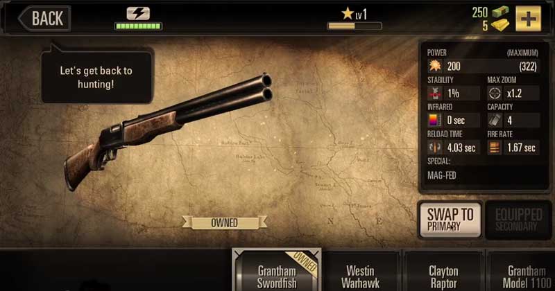 Для добычи трофеев можно использовать внушительный арсенал оружия: снайперские винтовки, дробовики и арбалеты различных моделей ждут своего часа, чтобы стать орудием убийства в руках виртуального охотника. Оружие расходует боеприпасы, поэтому стоит следить за количеством патронов в патронташе, чтобы не оказаться вдруг безоружным тет-а-тет с разъяренным медведем. Каждая успешная охота дает игроку возможность купить дополнительные боеприпасы, аптечки, приманки и другие гаджеты, которые помогут на охоте. Также персонаж получает очки умений и может вложить их в приобретение дополнительных способностей.