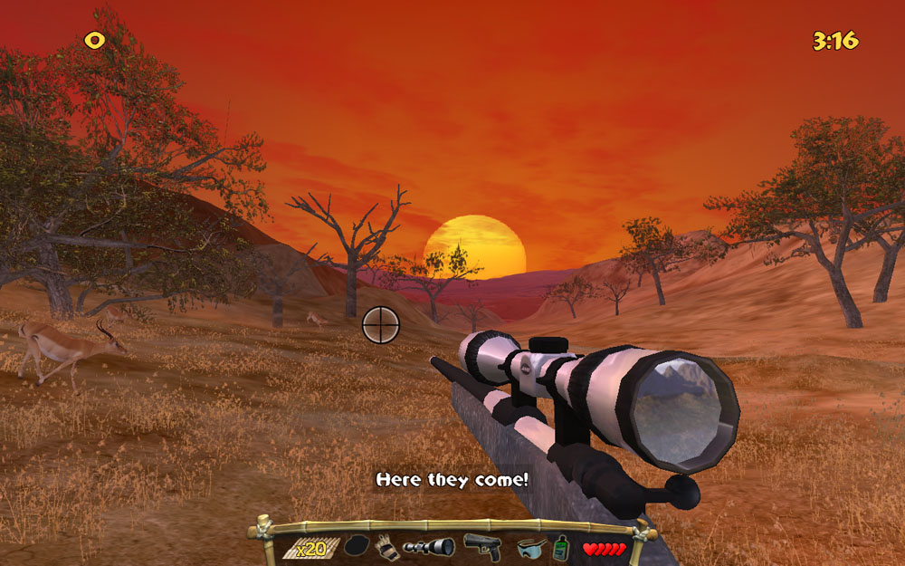 Стреляйте издалека, цельтесь в голову и убивайте опасных хищников до того как они заметят вас и нападут. Выбирайте оружие в зависимости от ситуации, чтобы набрать как можно больше очков. Во время своего сафари зарабатывайте достижения и покупайте новое вооружение. Возвращайтесь на пройденные ранее уровни и с помощью улучшенного оборудования пытайтесь побить свои прежние рекорды. Вносите свои лучшие данные в мировую таблицу рекордов. Покажите свои успехи и трофеи всему миру.