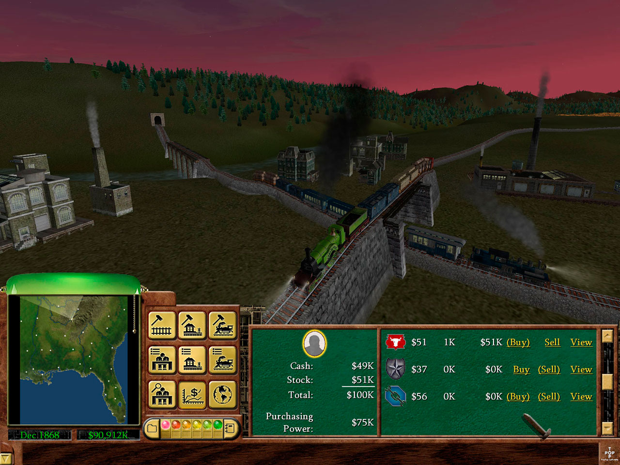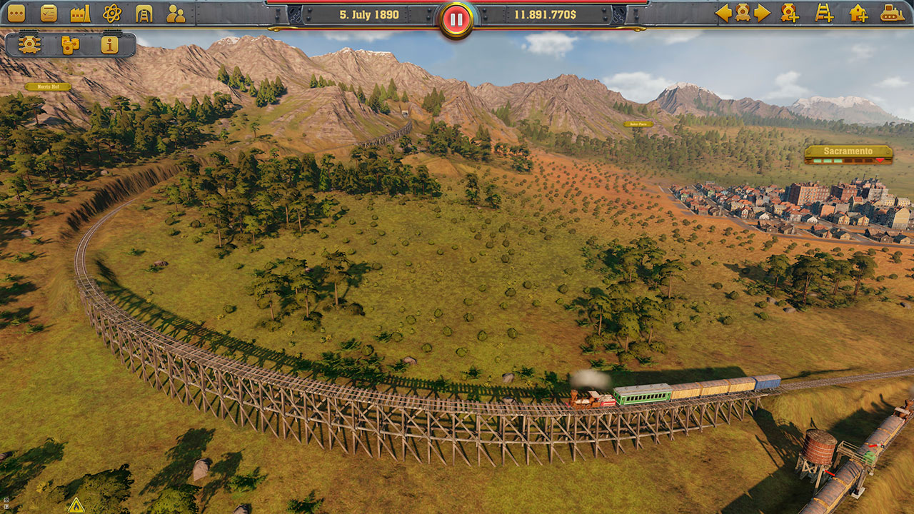 Симулятор железнодорожного магната в сеттинге Северной Америки 19 века. Основная задача здесь – заработок денег. Причем помимо прокладывания маршрутов и покупки поездов игрок может играть на бирже, приобретать и развивать предприятия, класть деньги на депозит в банк. Кампания в игре небольшая – всего пять глав, однако здесь имеются также отдельные сценарии, свободный режим и «песочница».