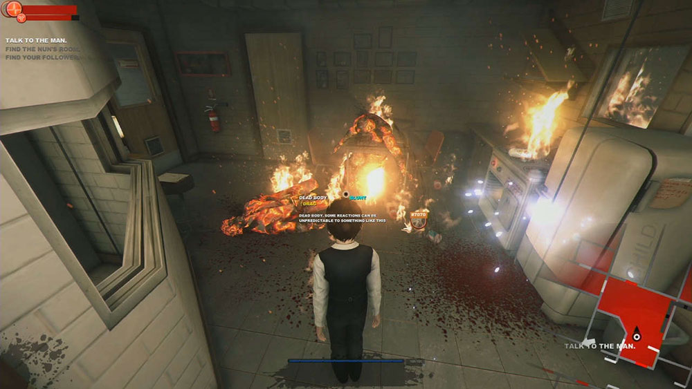Игра буквально пронизана мрачной готической атмосферой, под стать ей музыка и черно-белые палитра цветов. Отстрел будет проходить в самых разнообразных локациях – тут вам и бар с подвыпившими посетителями, и тесные улочки провинциального городка. В арсенале у маньяка-мизантропа самые разные стволы – автомат, дробовик, штурмовая винтовка, взрывчатка, огнемет и много чего еще. Главное, что потребуется игроку для удачного прохождения, – здоровые нервы и умение ловко обращаться с мышкой.