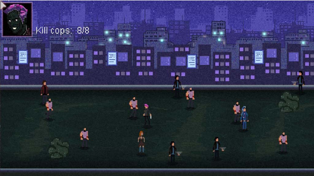 Пиксельный инди симулятор маньяка в стилистике восьмидесятых, где целью главного героя является поиск смысла жизни (на практике же все сводится к вырезанию случайных прохожих, полицейских и просто зевак, оказавшихся у него на пути). Проект выполнен в изометричном 2D с приятной неоновой стилистикой.