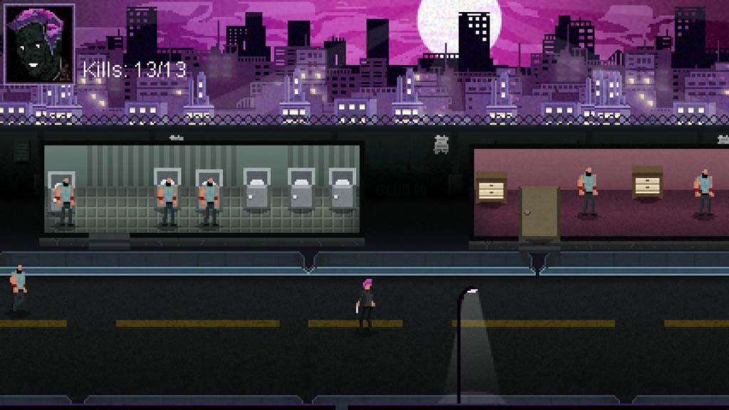 Игрушка чрезвычайно стильная с заведомо плохой, пиксельной 2D графикой и панорамным видом сверху. Здесь предусмотрено несколько миссий, открывающихся по мере прохождения – клуб, ранчо и так далее. Дариус должен убивать врагов скрытно, для этого выманить жертв с танцпола, прятать тела, убегать от полиции. Справиться с жертвой можно лишь сзади, в противном случае та отобьется и поднимет тревогу. Кроме оружия можно использовать отравление, минировать пейджеры. За успешное уничтожение людей следуют награды в виде новых доступных персонажей.