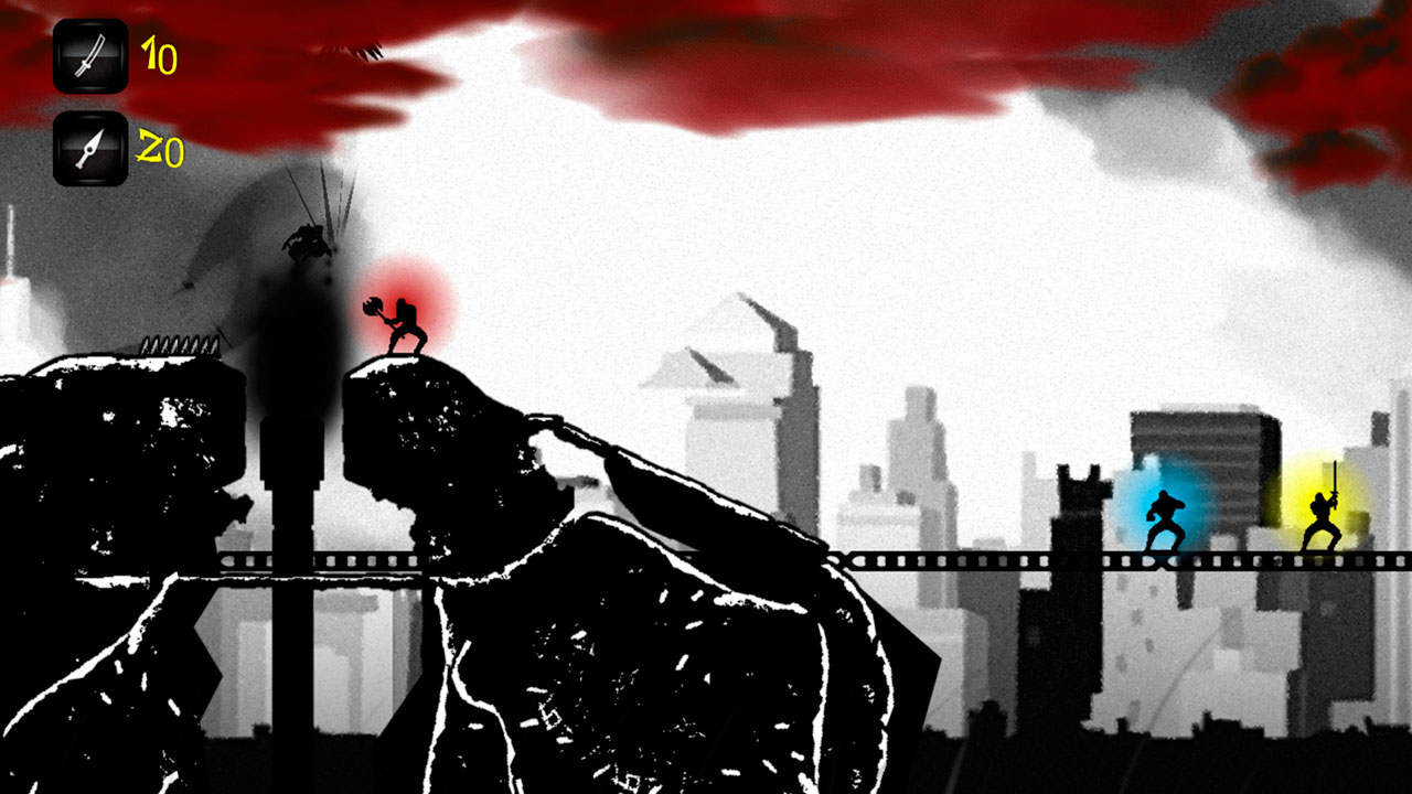 Двухмерный раннер-платформер, выполненный в черно-белой комикс-стилистике. Главный герой – ниндзя, который постоянно бежит вперед. Ему доступны ближняя и дальняя атака. На первых уровнях противников нет, однако удар мечом способен помочь в моменты, когда герой попадает в ловушку, поскольку в этот момент он как бы скользит, становясь на мгновение бессмертным. Однако следует помнить, что удары не бесконечны (10 ударов мечом и 20 бросков ножей).
