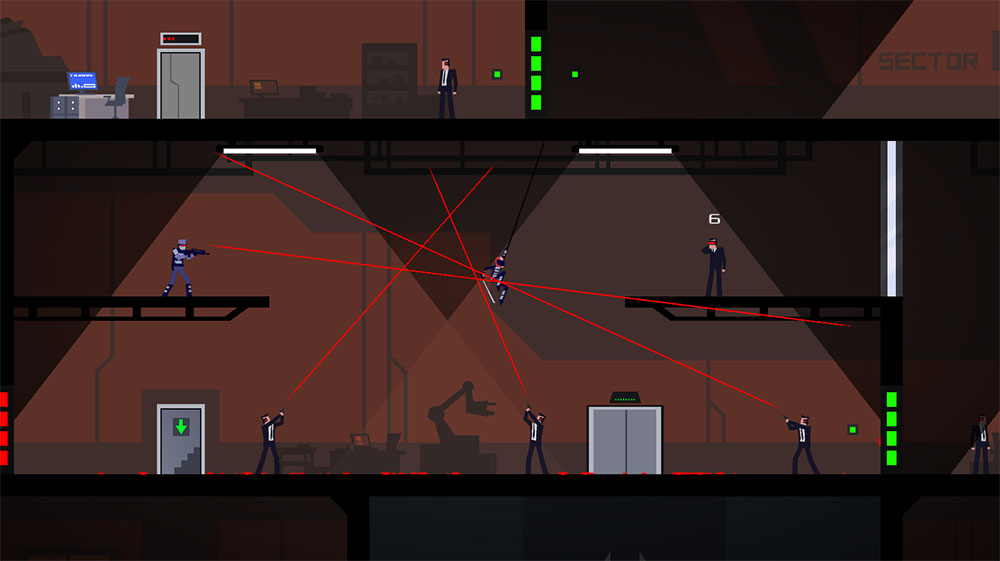 О сюжете, он тут есть, но не замысловатый, мы играем за ниндзю в мотоциклетном шлеме, лазим по стенам словно человек паук, по очереди, собираю инфу по нашем целям, всего их тут 5, но не не думайте, что это будет легко. в игре есть скилы, которые помогают нам в сражениях, кстати бои тут проходят в пошаговом режиме, что выглядит очень интересно, и иногда приходится долго думать, как поступить в той или иной ситуации. Врагов в игре всего 4 вида, не считая босов, это просто чуваки, которые стреляют по одному выстрелу, автоматчики, которые стреляют в одно место, и ниндзя. Есть еще 4 вид врагов, но они не атакуют, а просто трыньдят в сигнализацию.