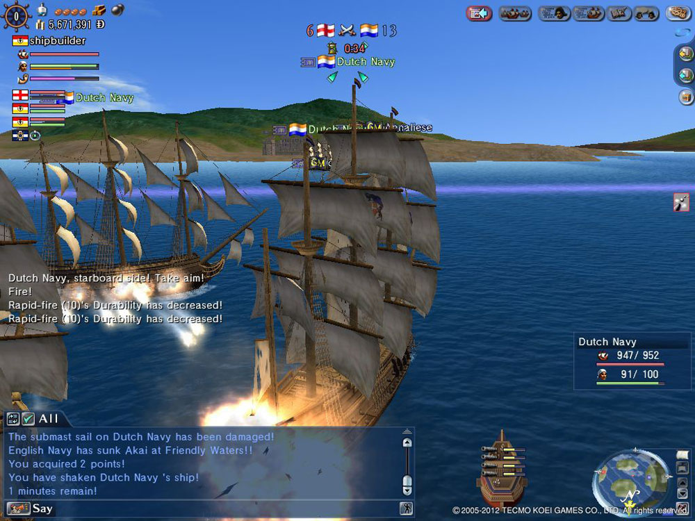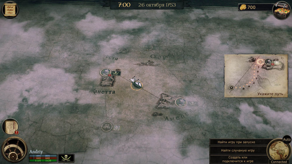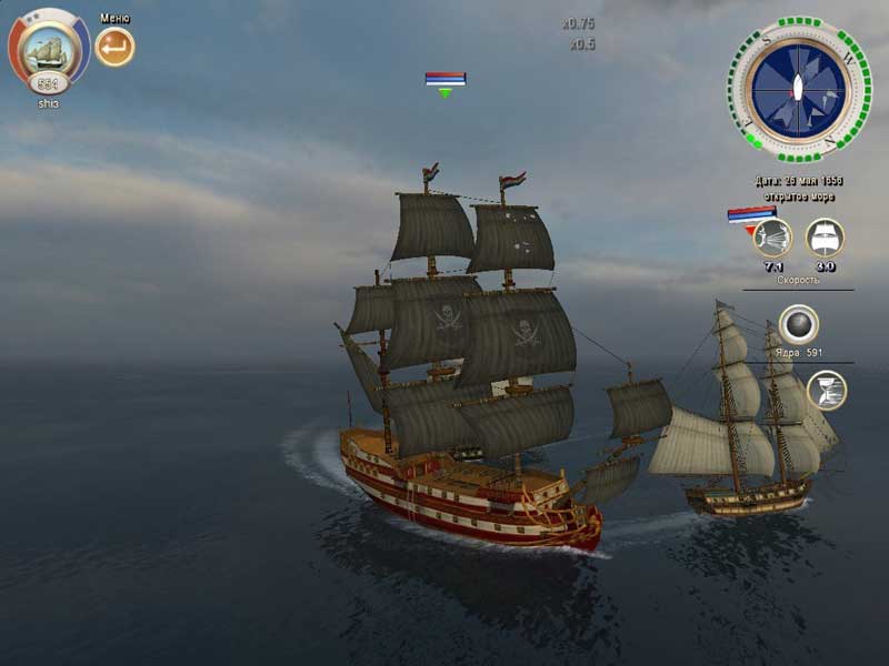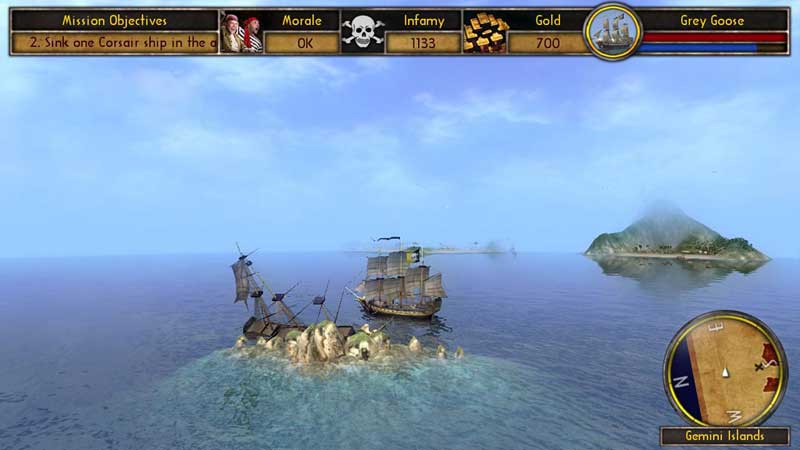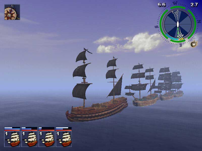 Управление кораблем как в шутере: знаменитые клавиши W-S-D-A. Встретившись с противником стараемся развернуться к нем одним из бортов корабля и вовремя выстрелить из палубных пушек. За каждую выполненную миссию, потопленные корабли и так далее, вы получаете золото Деньги тратятся главным образом на апгрейд вашего судна, который идет по трем направлениям: улучшение пушек (огневая мощь), улучшение парусов (скорость), улучшение бортовой обшивки (устойчивость к вражескому огню) или в конце концов на ноый мощный корабль.