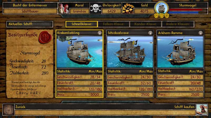 Также у вас будет в своём распоряжении корабль “Галка” На которую вы сможете набирать экипаж, покупать новые пушки, снаряды броню и другие элементы. В море можно воевать с другими кораблями брать их на абордаж, после чего захватывать припасы и продавать корабль. Игра помимо интересной сюжетной линии имеет и множество дополнительных заданий, включая и поиск карт и сокровищ. Игра полностью пропитана пиратской тематикой, и понравится любителям этого жанра. Игра хорошо сбалансирована, главному герою пирату всегда есть, чем заняться как на суше так и на море.
