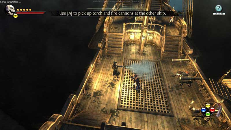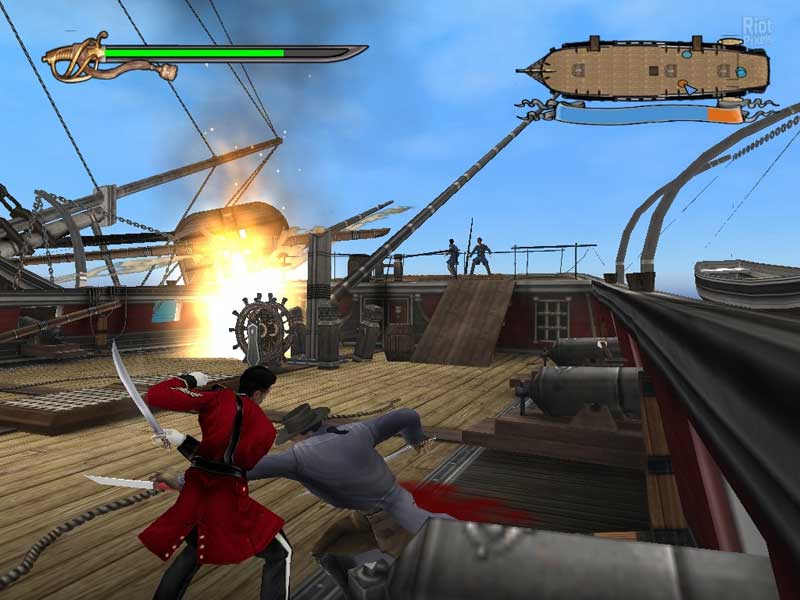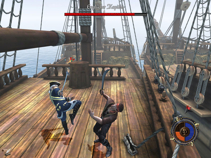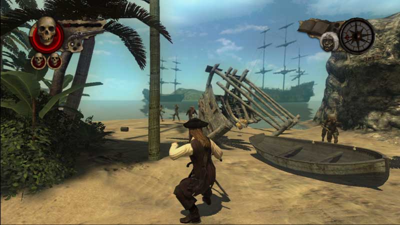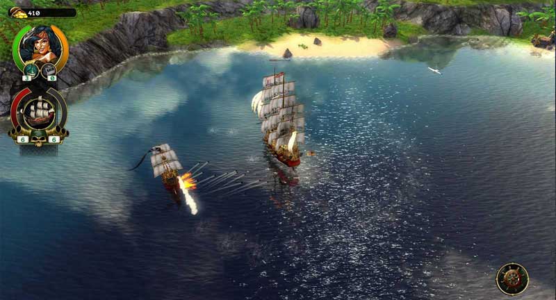 В морских сражениях присутствуют все атрибуты пиратского антуража – перестрелки с вражескими посудинами, штурм береговых укреплений, абордаж. Есть и разные типы боеприпасов, можно даже сбрасывать на пути у преследователей бочки с порохом, выполняющие роль мин. Сухопутному режиму отведено почти столько же времени, сколько и морскому. Герой может ставить блок в боях, применять проводить комбинации ударов так и атаки.