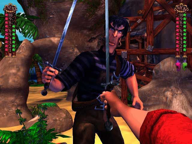 Сражаться придётся с разными животными. пиратами и прочими противниками используя пистолеты и саблю. По мере прохождения главный герой овладевает все новыми и новыми комбо-ударами. Время от времени наш герой, при помощи магического амулета, способен перевоплощаться в черного корсара. В состоянии берсеркера герой некоторое время может рубить врагов.