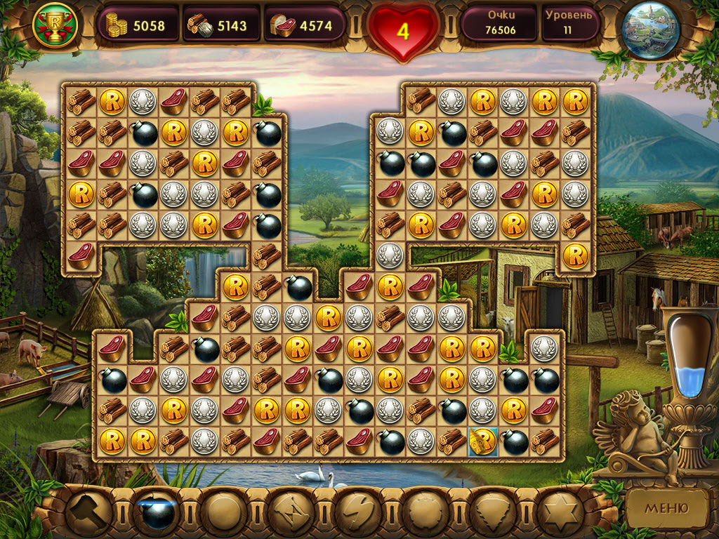 «Колыбель Рима» – логическая игра, где за выстроенные в ряд три одинаковых фигурки начисляются очки, а они, в свою очередь, позволяют строить новые здания, защищать Рим от варваров и возвести, в конце концов, Колизей.