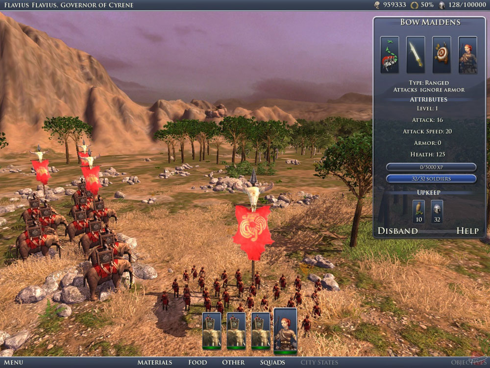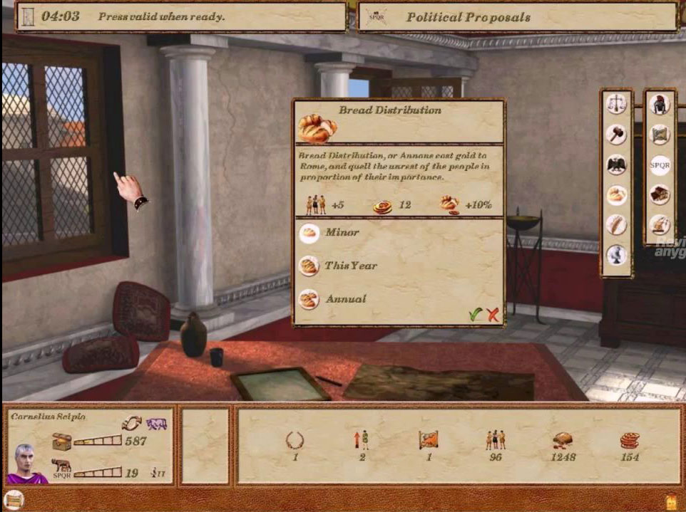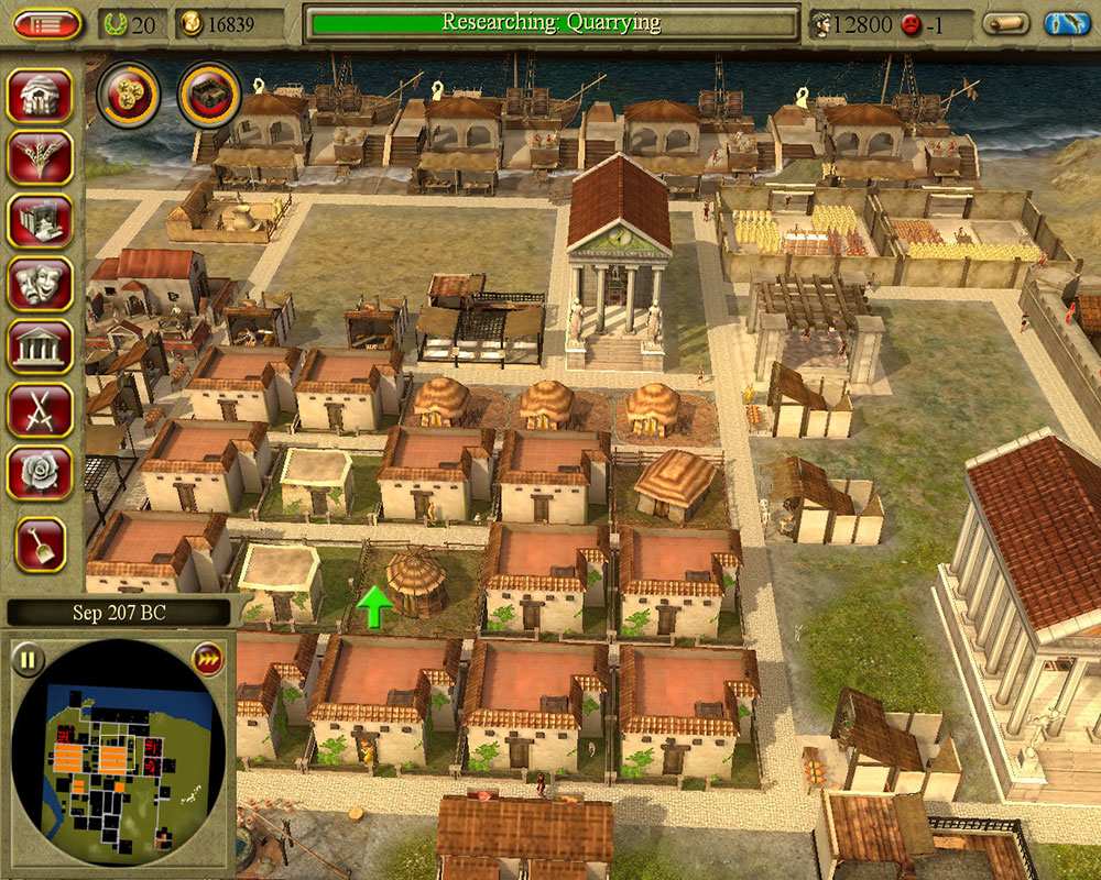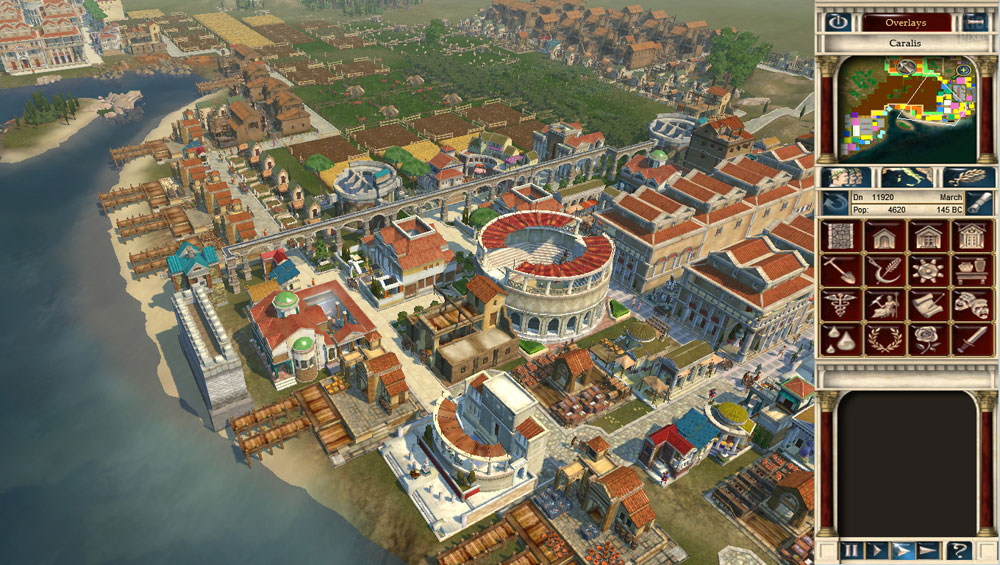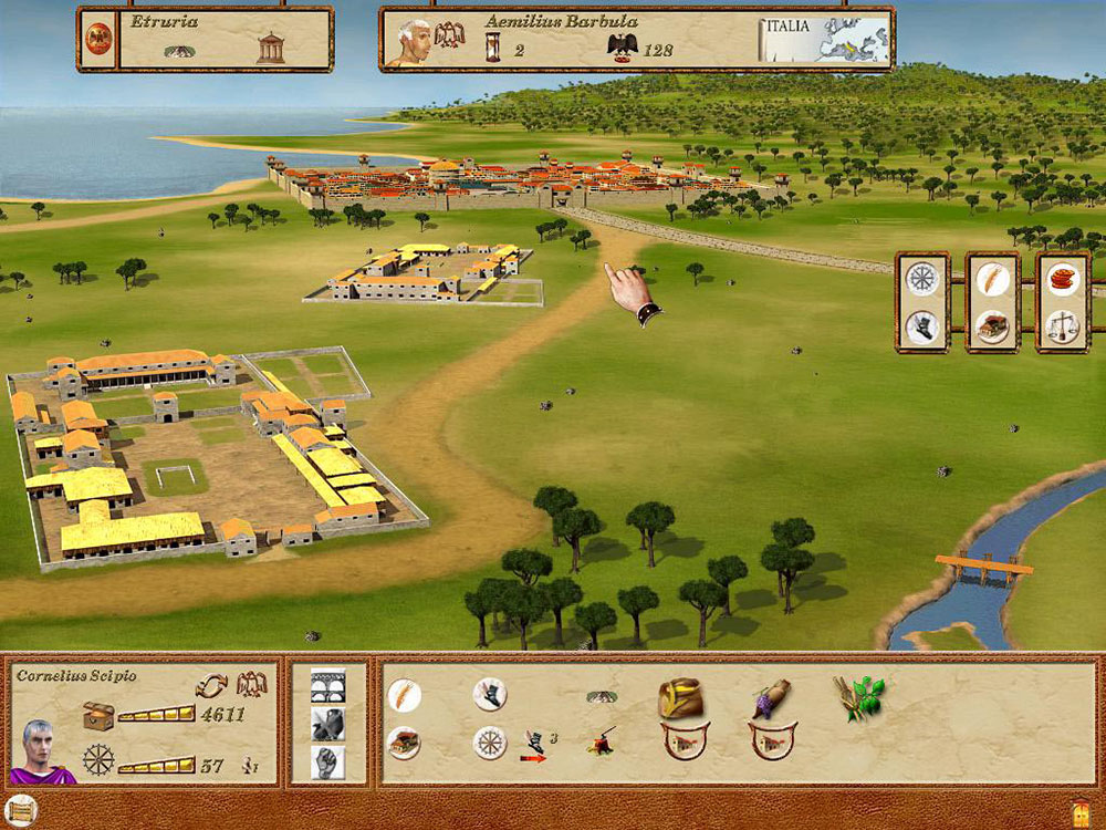 Вам предстоит развить процветающую общину из небольшой деревни за счет торговли с соседями, а также расширить и защитить свою территорию, участвуя в войнах. На плодородных равнинах Апеннинского полуострова ты будешь строить особняки и храмы, разбивать парки и ставить в них изящные статуи, прокладывать дороги и сооружать арены для гладиаторских боев. В уютных домиках поселятся твои подданные, о которых нужно будет заботиться, кормить их, обеспечивать работой, развлекать, не допускать восстаний и эпидемий чумы.