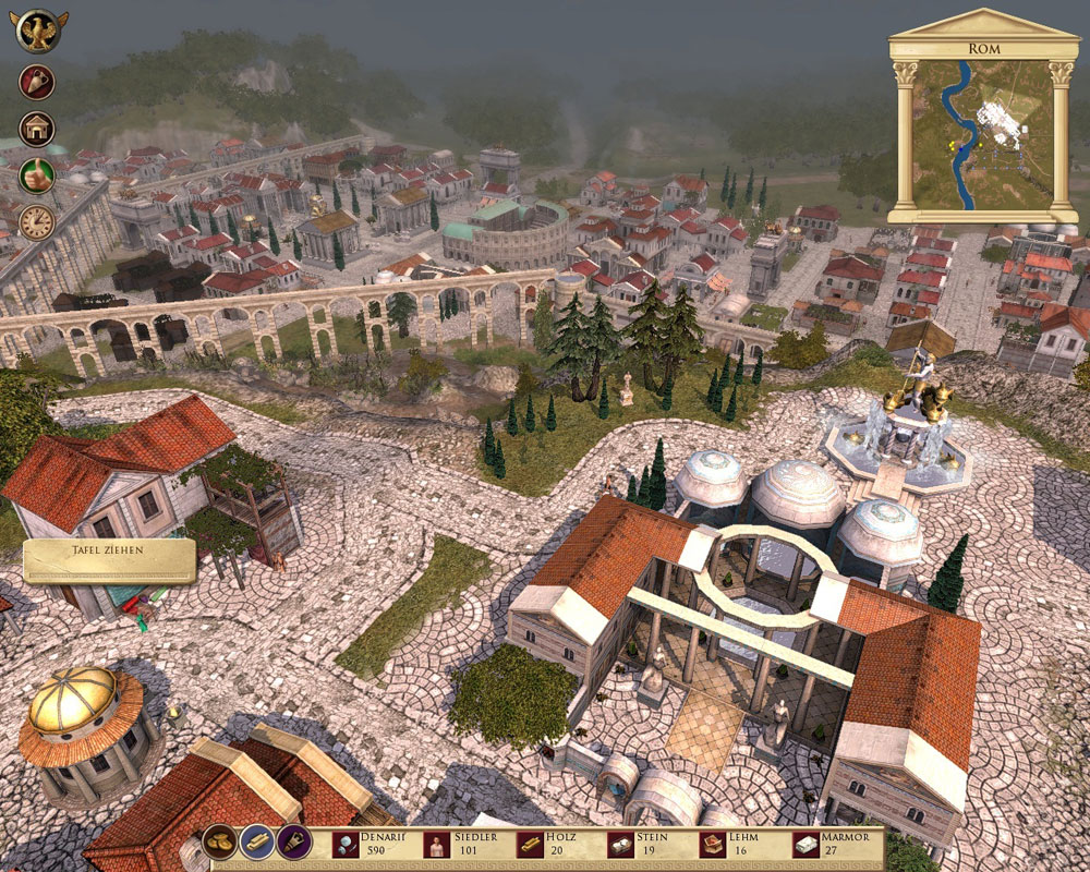 Imperium Romanum – очередной градостроительный симулятор с достаточно неплохой графикой и массой возможностей. Цели в игре понятны и просты – сделать свое поселение самым богатым и самым процветающим, обскакав многочисленных конкурентов и выполнив заготовленные разработчиками задания.