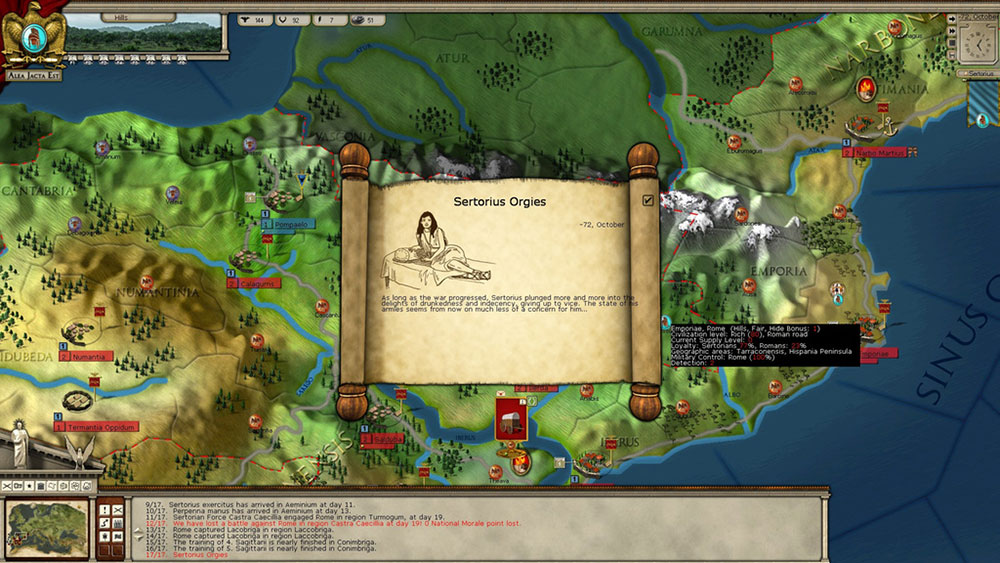 Легион – сочетает в себе пошаговую и стратегию в реальном времени, где главной целью является захват земель путем ввода войск и основания городов и уничтожение всех врагов. Игра позволяет вам погрузиться в те неспокойные времена, когда над Апеннинами только начинала разгораться заря новой эпохи – эпохи Великой Римской Империи. Дикие, непримиримые племена и гордые, независимые города-полисы преградили путь железным когортам Рима.