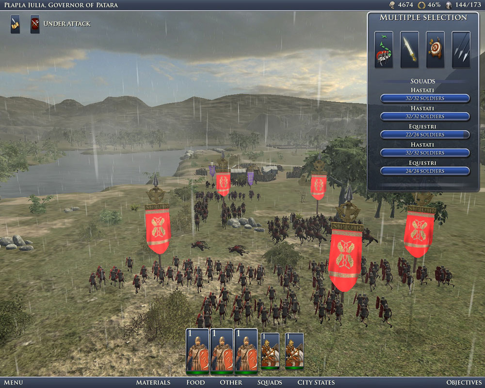 В игре есть одна игровая кампания — за римлян, состоящая из 24-х миссий. Игроку предлагается занять место одного из легатов Цезаря. Нам доступно несколько разновидностей отрядов, классификация и иерархия которых достаточно близка к историческим: лучники, лёгкая пехота, копейщики легионеры и прочее. Praetorians – хороший исторический варгейм без особого углубления в историю и строительство. Просто оченб хорошая стратегия в реальном времени в антураже Древнего Рима.