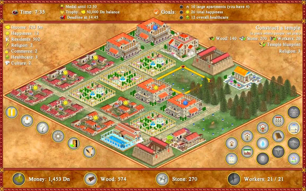 Как главному градостроителю и архитектору, вам необходимо будет делать все для роста, благоустройства и процветания своего города. Вам также предстоит прислушиваться к просьбам горожан и вовремя обеспечивать их всеми необходимыми благами, следить за развитием индустрии, пополнять городскую казну и решать большое множество других забот.