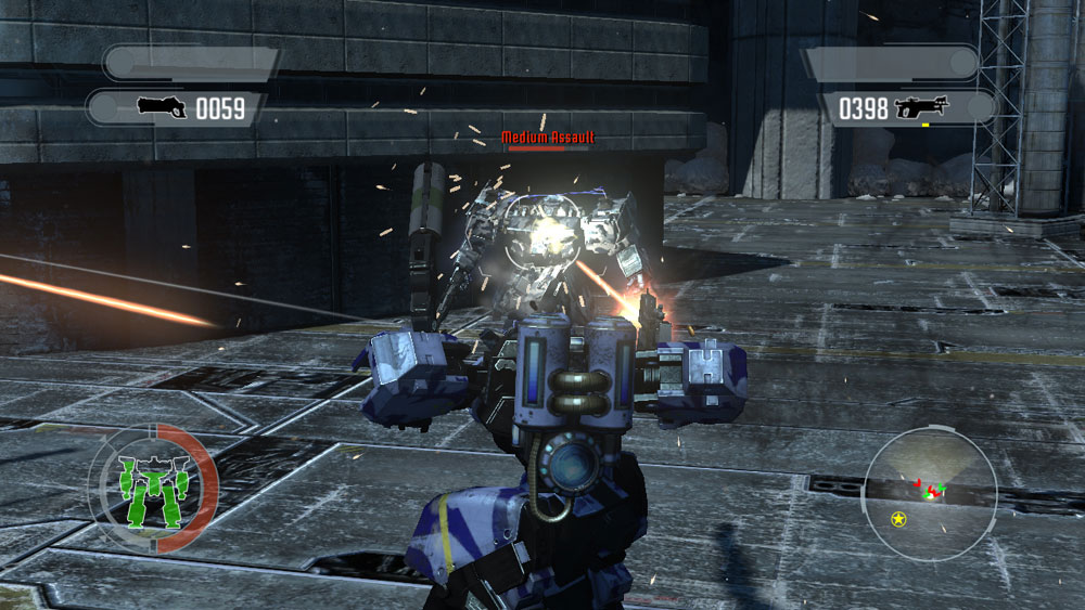 Бои отличает высокая скорость граничащая с мельтешением/неразберихой и хаосом, где надо стрелять во всё что движется. Боссы классические с уязвимыми местами и тактикой. Необходимо постоянно подбирать патроны, здоровье, деньги для модификации своего робота. Можно побегать за мелкую пехоту (пилотов роботов) в закрытых помещениях.