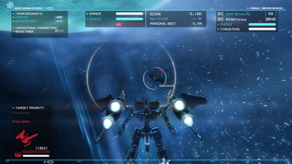 Strike Suit Infinity – космический шутер про мехов. Все предельно просто – выбираем свой костюм/корабль и преодолеваем максимальное количество вражеских волн. Единственная проблема с которой здесь можно столкнуться – слишком комплексное управление. К нему нужно привыкнуть и приловчиться к использованию множества кнопок, отвечающих за разные функции (само по себе управление вполне отзывчивое).