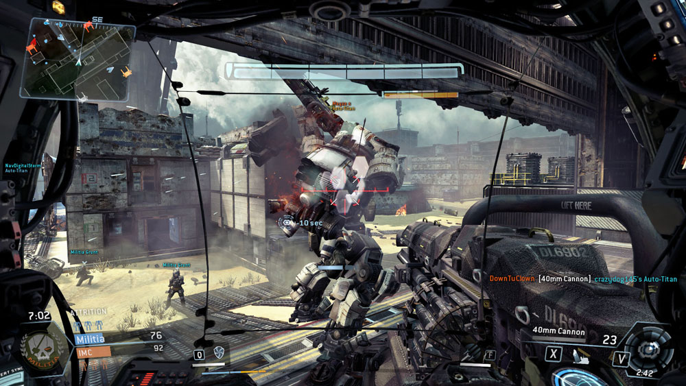 Можно взывать с орбиты роботов так называемых Титанов их класс, снаряжение и предназначение может изменять игрок. Титан может наносить огромный урон пехоте и Пилотам, но он уязвим к “родео-атакам” – прыжкам Пилотов и спектров на верхнюю часть Титана. Titanfall — на удивление серьезная командная игра с большим тактическим потенциалом. Поддержка союзных Титанов, правильное распределение ролей и планирование атаки — для успешных действий нужно учитывать все эти аспекты.