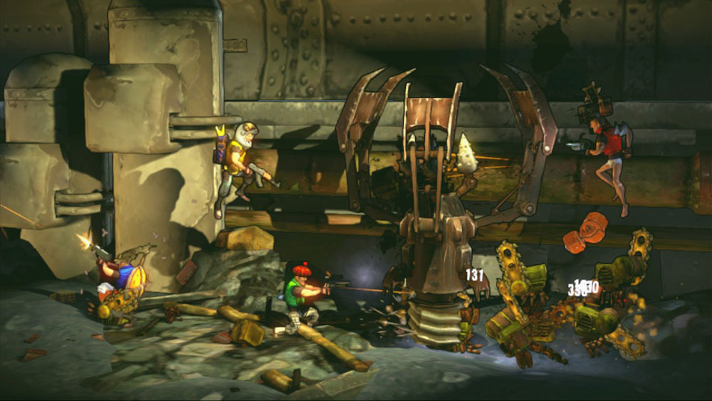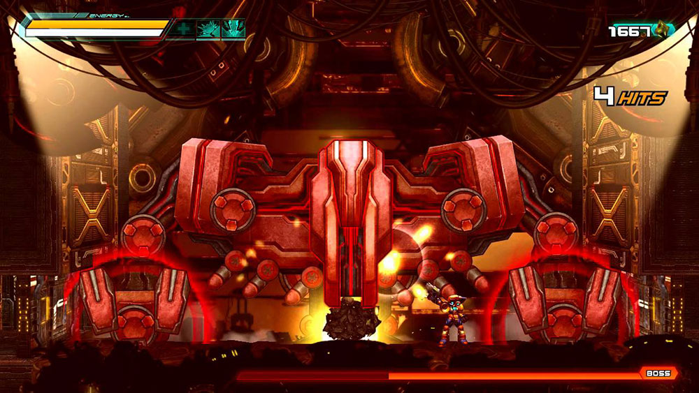 С огромной скоростью Вы в роли робота перемещаетесь по кажущимся маленькими в глазах железного титана улицам Мегасити, не переставая палить во всё, что движется, взбираясь на крыши небоскрёбов, пробегая сквозь туннели для поездов, сбивая грудью хлипкие вертолёты… И без того мощный геймплей игры ещё больше поражает, когда на Вашем пути встречаются боссы, – а они попадаются практически в каждой миссии. Самые невероятные модели Рабов и космических кораблей с ещё более невероятным оружием и зачастую требующие к себе особого подхода. Сами основы Мегасити сотрясаются от взрывов, когда под Вашими ударами падает очередной колосс.