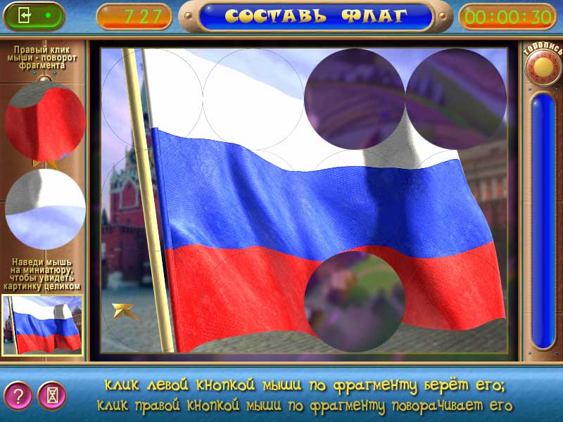 Поиграйка. Моя страна Россия – необычайно увлекательная и познавательная игра, в которой ребенок познакомится с основными достопримечательностями России. Вместе с домовенком Бу малышу предстоит отыскать утерянные страницы из книги о персонажах русских сказок и былин, но сначала – разгадать загадки картографов и разместить соответствующие объекты на карте России.