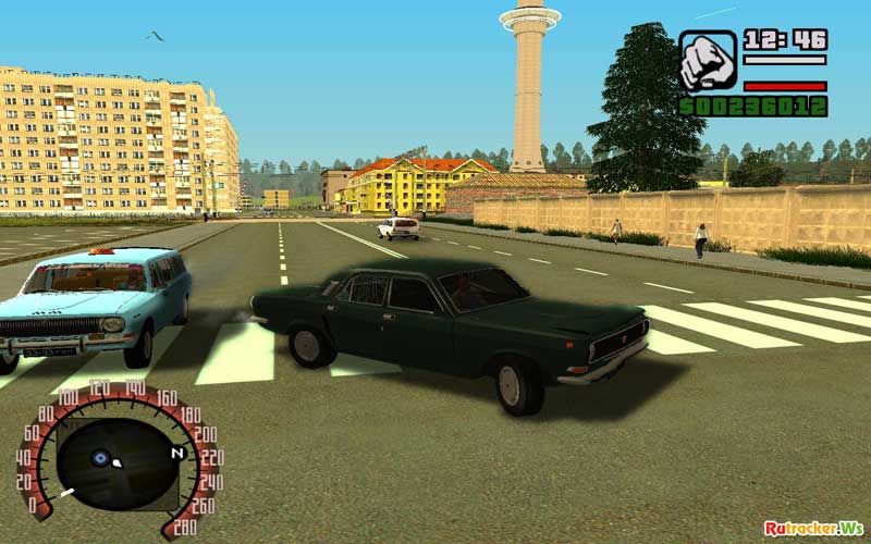 GTA по-русски! Именно так, GTA Криминальная Россия покажет вам известную игру с новой стороны, которую ранее вы не видели. Если Вас уже порядком подташнивает от покатушек по изученному вдоль и поперек городу Либерти Сити, то новый город, который своей архитектурой и строением так напоминает Россию – будет для вас свежим глотком воздуха. Вроде та же игра, но все новое и неизученное. Город действительно напоминает знакомые нам виды. Можно смело забрести в какой-то спальный район, как вы поймете, что криминал раша не зря так называется. Мы увидим автомобили нашего производства, которые будут рассекать по длинным проспектам и стоять на стоянках возле домов. Спецтехника тоже изменена, поэтому уходить от погонь мы будем от привычных для нас уазиков, а в сельской местности встретим наши «синие» трактора. В общем, погрузитесь в виртуальный мир криминальной России в ГТА.