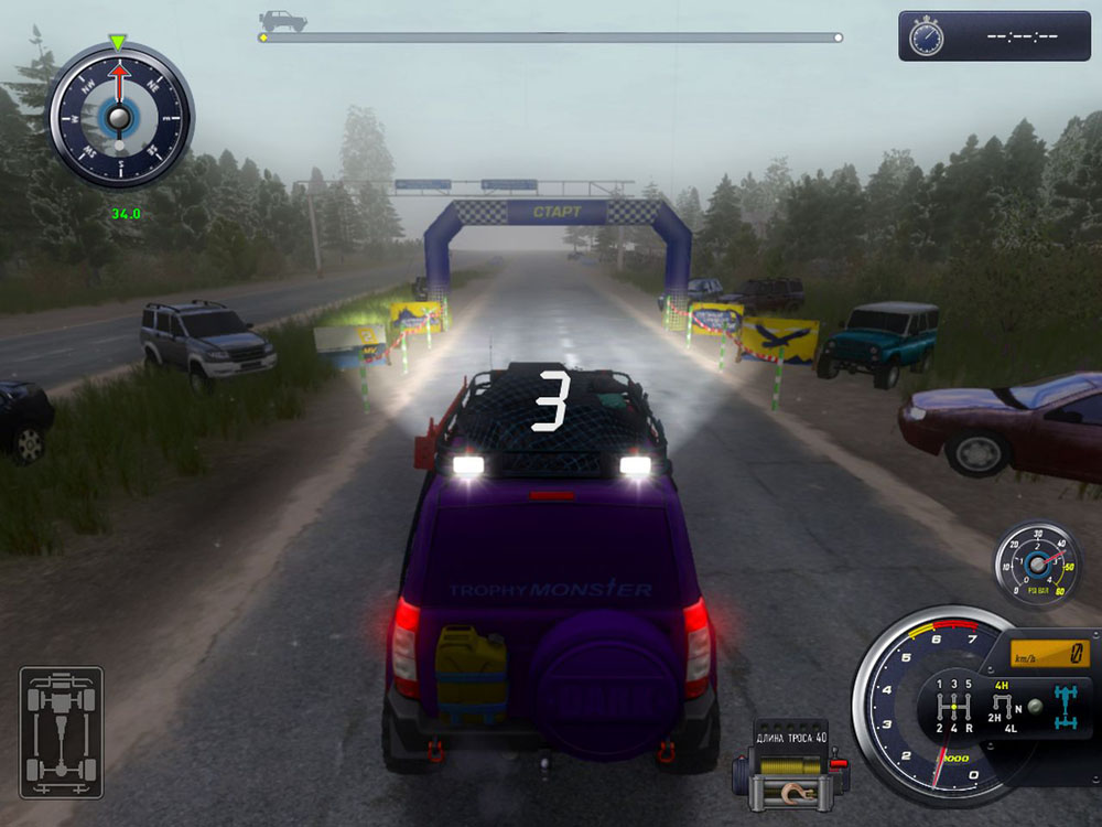 Вас ожидают разнообразные трассы, проложенные с точным соблюдением топографических особенностей реальной местности; видеоролики с панорамами городов, по которым проходит маршрут трофи; точно смоделированные погодные условия, характерные для различных регионов России. Имеется два режима игры: «Аркада» для начинающих водителей и «Симулятор» для опытных путешественников.