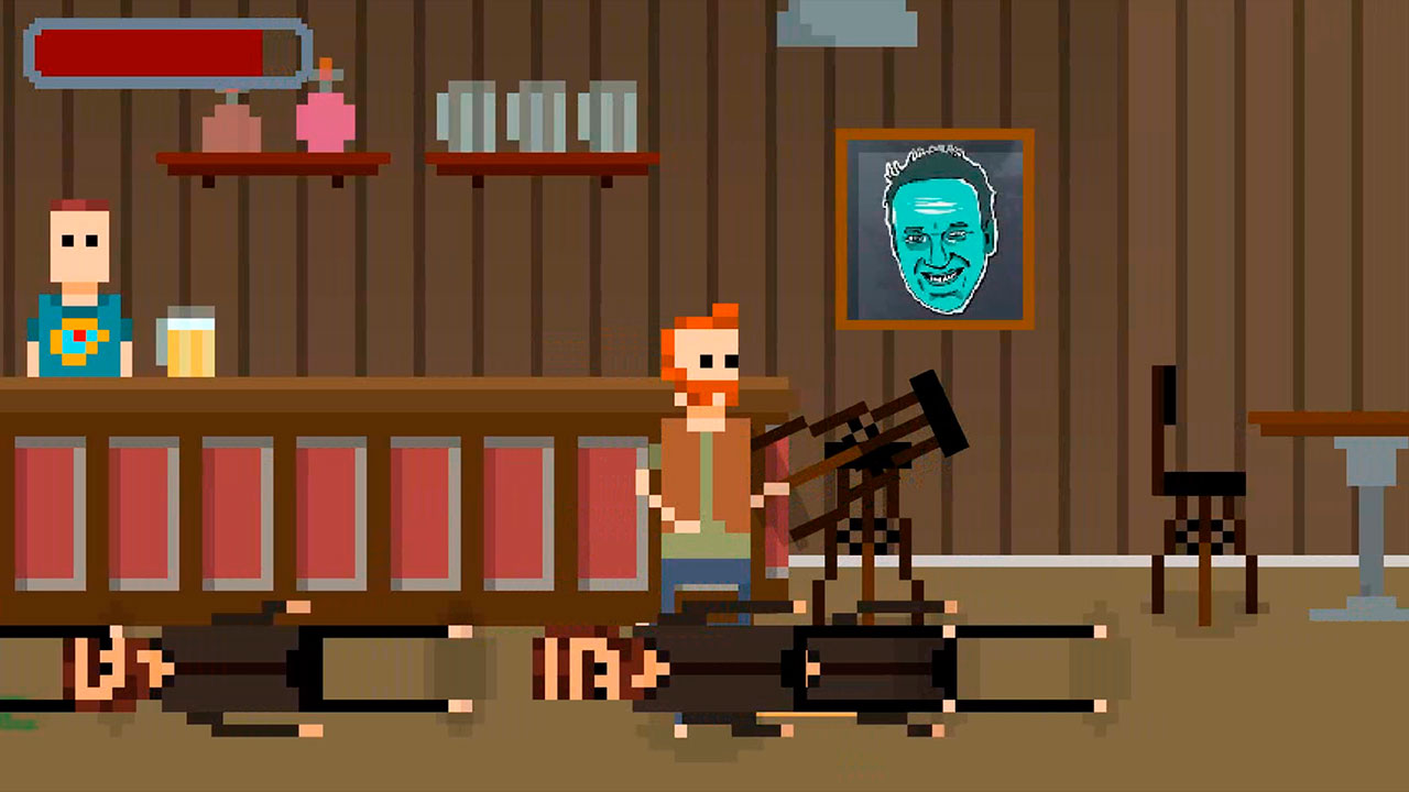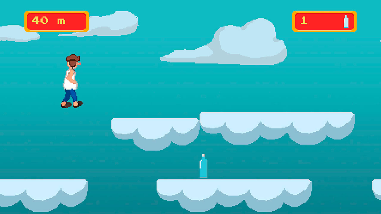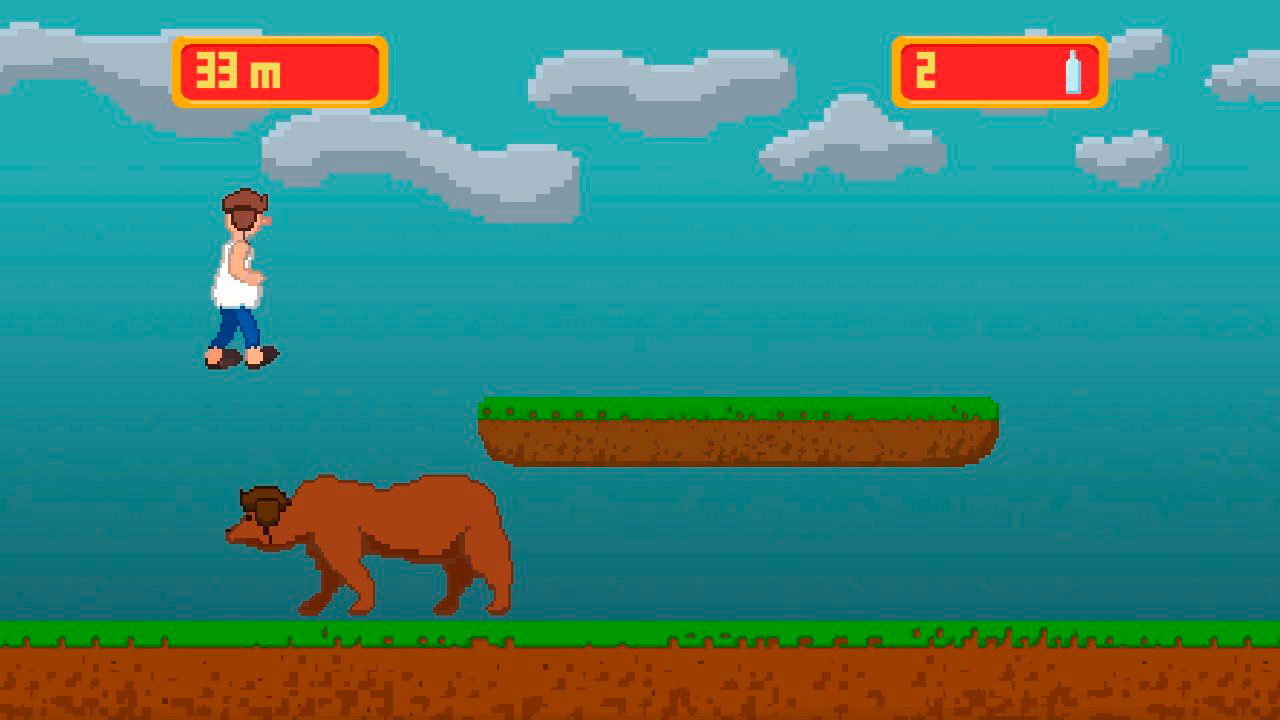 Инди-игра с примитивнейшей графикой, выполненная в жанре раннер, повествующая о бегущем «русском мужике», который бежит по России, выпивая водку и стараясь не попасться в лапы к медведям. Проект настроен на высмеиванте стереотипов, поэтому он «доверху» наполнен клюквой и клише по поводу русских.