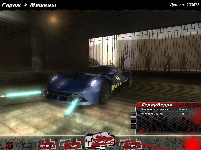 8 машин, 3 района для гонок: город, порт, коллайдер. Возможность улучшения автомобиля (мясорубки для зомби, лезвия, огнемёты, электрические дуги, ускорители). 11 разновидностей заданий: Уничтожение зомби на время, бои на выживание на 3-х аренах, гонки на лидерство и выбывание, сбор артефактов, охота на конкурентов, охрана и спасение друзей и другие.