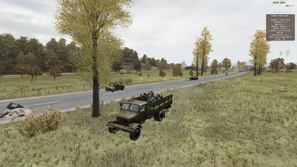 В игре даже один зомби может легко победить героя, особенно учитывая, что он может материализоваться у него за спиной. Стрельбу из оружия и свет можно использовать как метод привлечения зомби. Кроме того, зомби чувствительны к запаху игрока. Тем не менее, игрок может подкрадываться к ним сзади и совершать «тихое» убийство.В ходе игры можно составить группу из наемников, до четырёх персонажей. Наемников можно посылать на сбор предметов. Каждый выживающий обладает уникальным набором статов, который определяет, сможет ли персонаж выжить при добыче ресурсов. Иногда напарников необходимо оставлять позади.