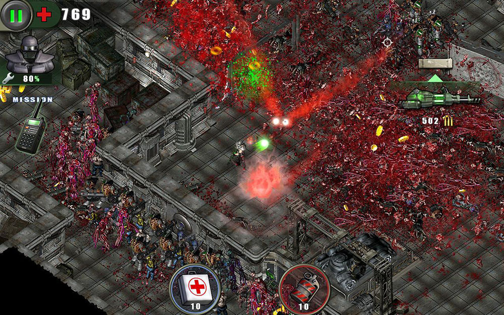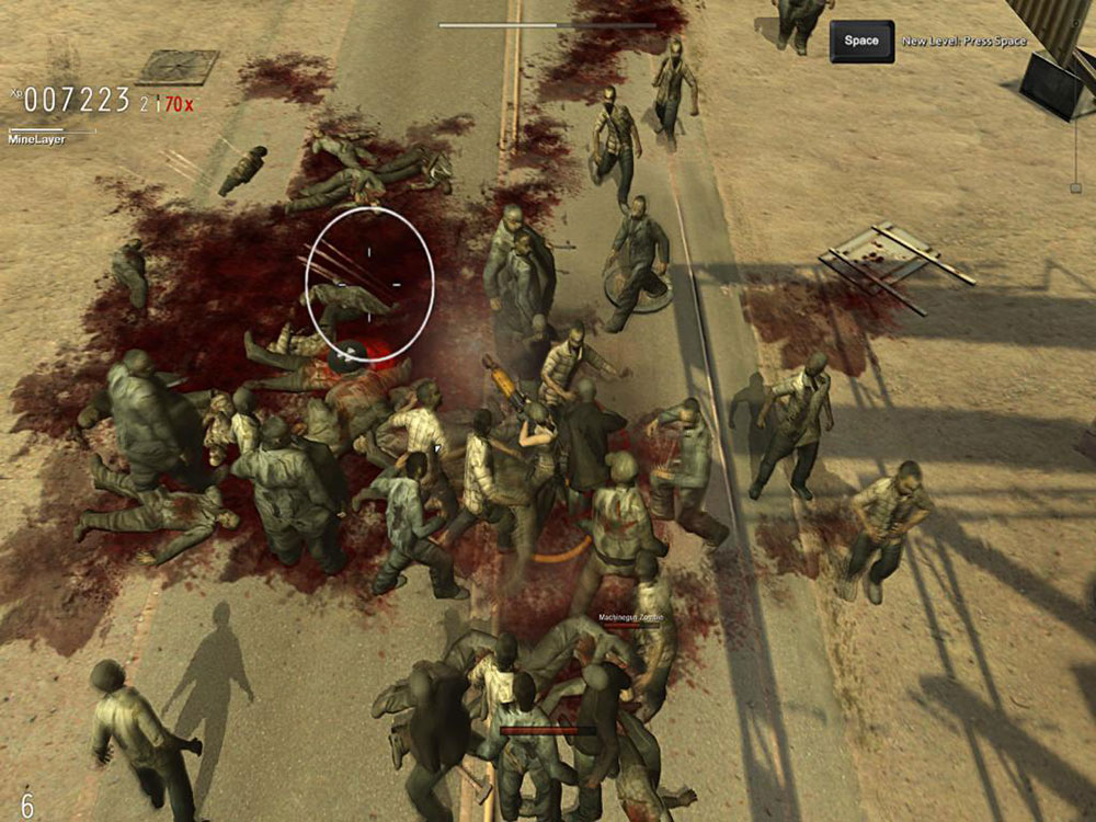 Если вы готовы к настоящей кровавой резне, то эта игра – для вас! Стреляйте во все стороны – не промахнетесь. Вас окружают тысячи мертвецов. Привыкли к тому, что зомби с трудом ноги волокут? На этот раз они бегают быстрее любого спринтера. Некоторые из них поумнели настолько, что используют оружие. Жгите мертвецов напалмом, расстреливайте, разрубайте на куски. Уцелейте в жестокой мясорубке и станьте самым крутым парнем на просторах Зомбилэнда!