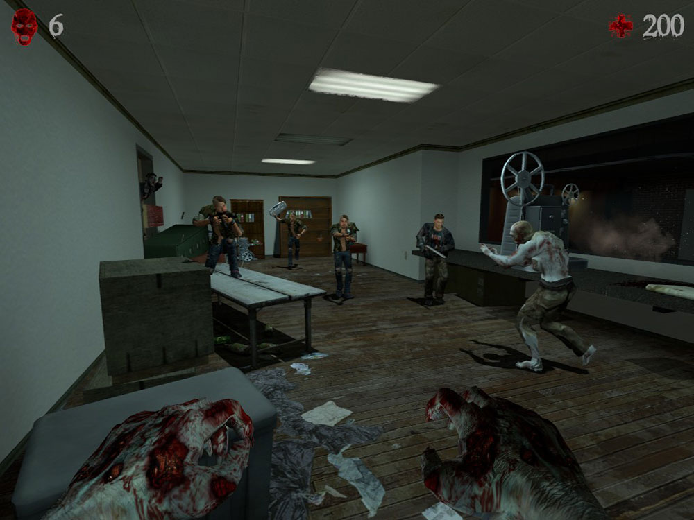 Можно играть как в одиночном режиме, или с друзьями и другими игроками по интернету. Играть не только за выживших, но и за зомби! Проработанная система случайного появления амуниции и объектов, необходимых для выполнения заданий. Непредсказуемая интелектуальная система появления зомби, которая регулирует действия игроков. Система составления заданий и путей. Каждое прохождение будет уникальным!