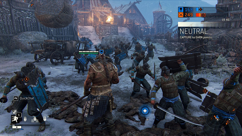 Игра может похвастаться уникальной боевой системой, которая имеет множество приемов для атаки и защиты. В игре доступны несколько режимов -осада игроки 4 на 4 воюют за точки, дуэль и битва 2 на 2. Также For Honor имеет исторически верную экипировку бойцов и достоверное вооружение каждой из фракций.