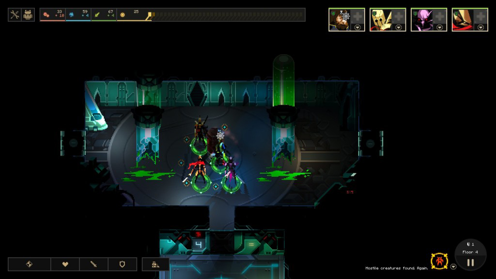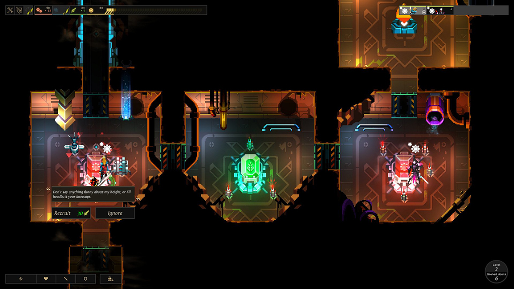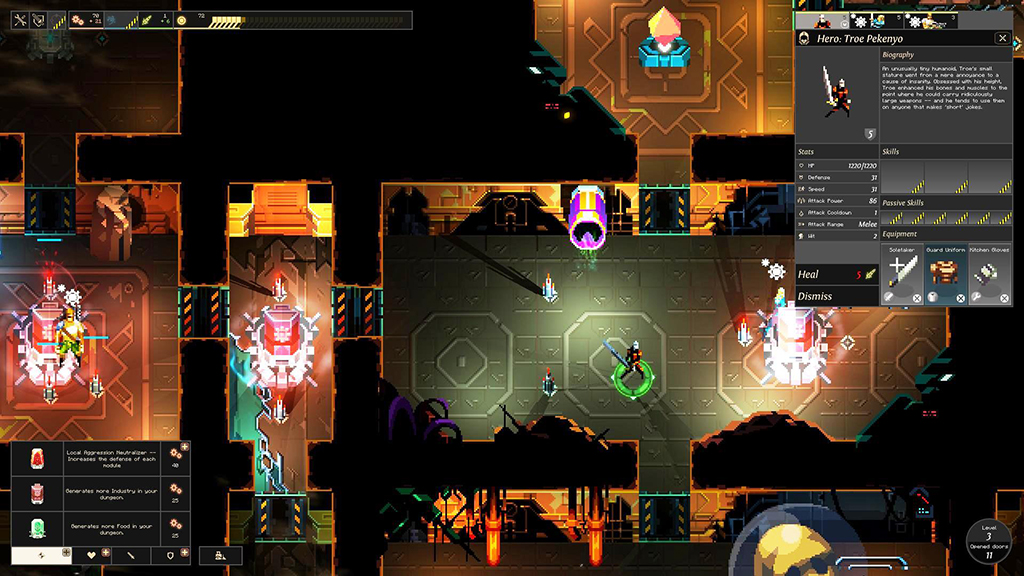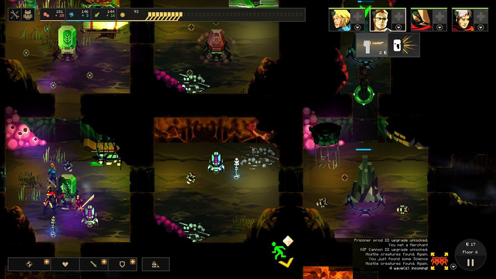 Геймплей игры делится на стратегический и «башенный». В стратегической части мы в роли выживших исследуем подземелье, добываем сокровища и ресурсы, а во второй – ставим турели и охраняем кристалл. Игровой процесс построен таким образом, что с каждой новой комнатой защищать кристалл становится сложнее, поэтому игроку постоянно придется балансировать между добычей ресурсов, желанием исследовать больше комнат и переходом на следующий этаж.