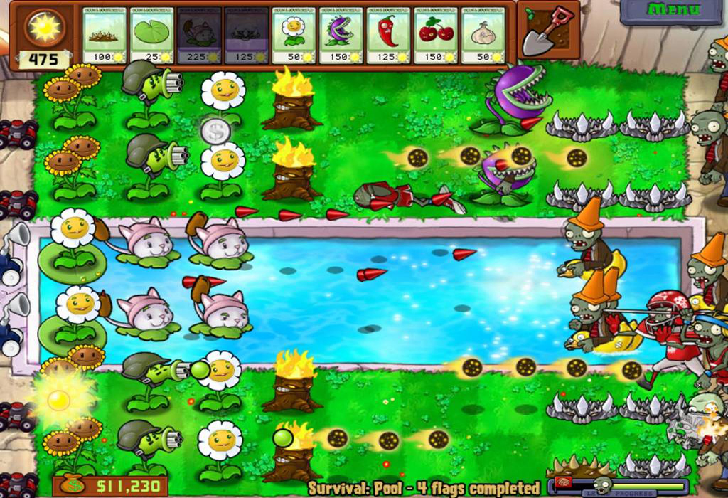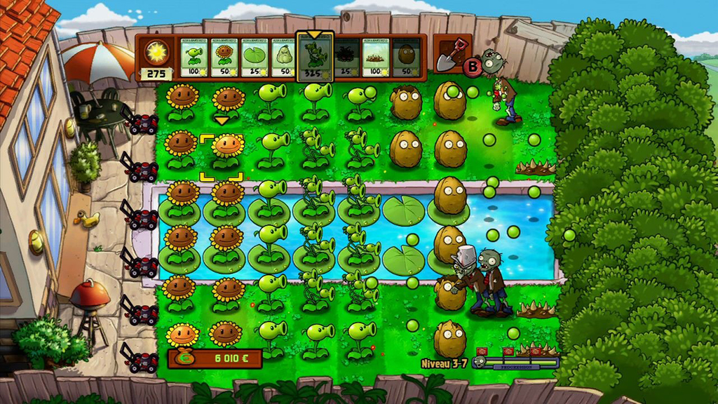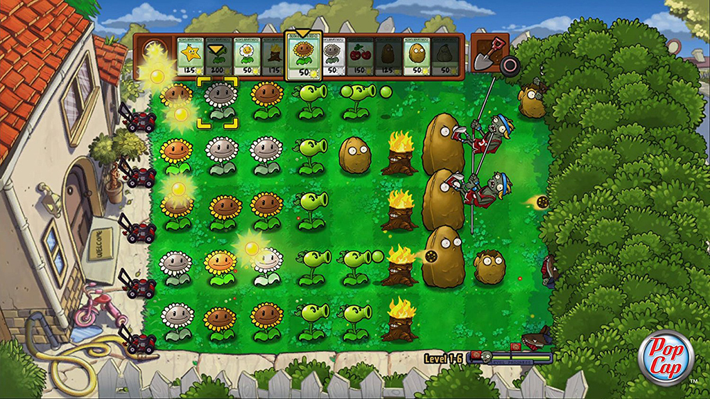 Весьма оригинальная игра в жанре tower defense, в которой игрок должен защитить свой дом от атак зомби, расставляя на газоне различные растения. Ресурсом для высадки новых растений является солнце, производимое симпатичными подсолнухами. Другие растения используются для различных видов атаки на тех или иных зомби, а также для их замедления, защиты растений и прочих целей.