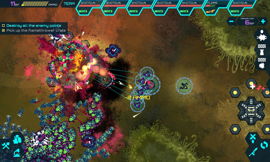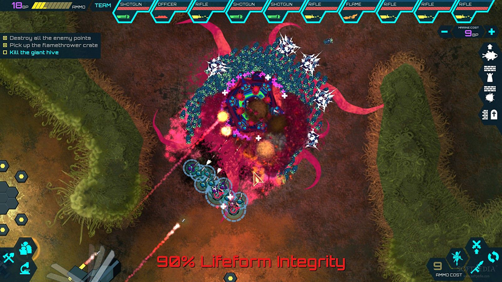 Для победы в игре нужно будет эффективно распределять добываемые ресурсы, нанимая новых солдат, улучшая их и снабжая новым вооружением. Не забываем и о защитных турелях, которые позволят сдерживать постоянно растущие орды противников. Помимо длительной компании игра содержит генератор сражений, позволяющий разыграть по своему вкусу любую битву.