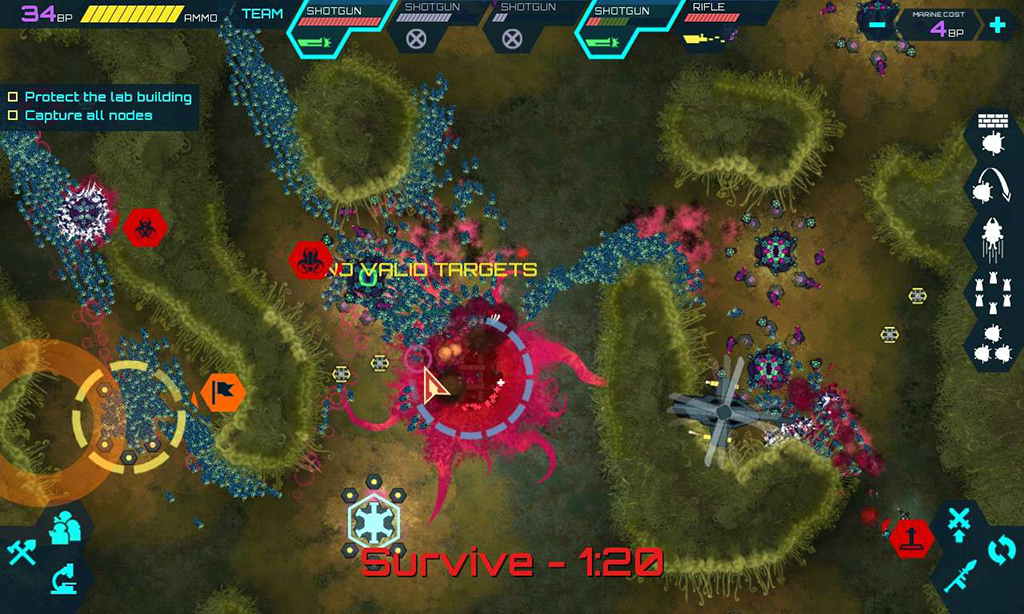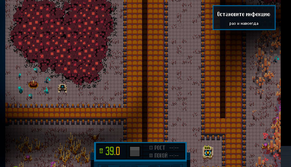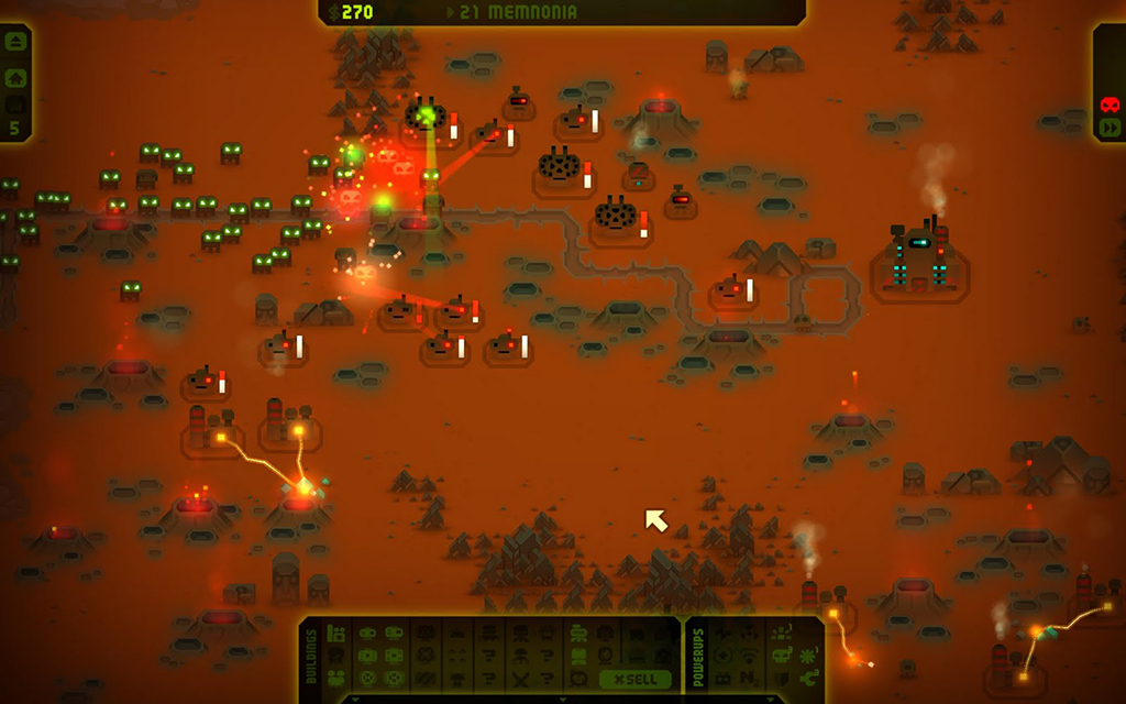 Защитные сооружения в игре строятся из блоков, располагая которые по-разному можно получить различные строения и башни с разными характеристиками. Необычный противник – растущая живая биомасса может просочиться даже в мельчайшую брешь в обороне, поэтому следить за ее распространением следует постоянно. Управление здесь осуществляется напрямую через робота-строителя (еще и без помощи мыши!), что накладывает некоторые ограничения на игровой процесс – увлекся строительством на одной стороне базы, придется долго бежать на другую сторону, не успевая к прорыву обороны.