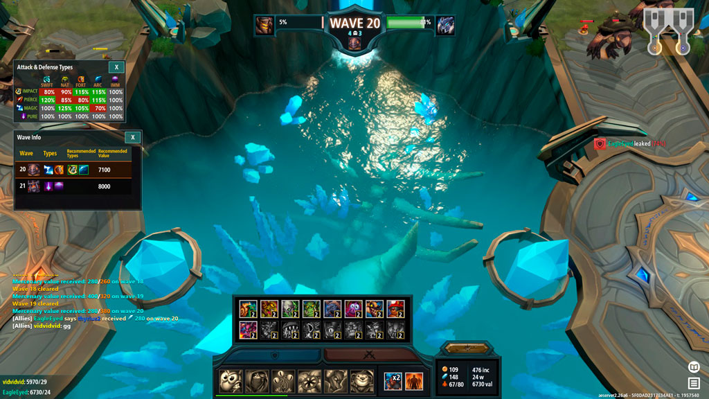 Игровой процесс построен на онлайн-сражении в режиме 4 на 4 или 2 на 2, при этом игроки могут выбирать одну из множества рас со своими уникальными персонажами. У каждого игрока здесь свой коридор, по которому он отправляет свои войска в атаку. По нему же навстречу идут враги. Игроки должны добывать ресурсы, защищать своего короля (главный юнит, потеря которого ведет к поражению), посредством расстановки бойцов (аналог башен) и атаковать вражеского короля, стараясь координировать при этом свои действия. За прохождение волны дается золото, которое можно тратить на улучшения.