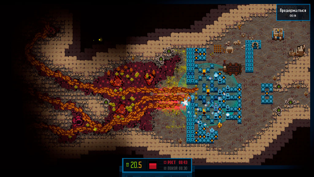Пиксельный Tower Defense с оригинальной механикой, в котором вам в роли колонистов предстоит сражаться против протосущества похожего на багровую биомассу, которое дремлет днем и разрастается ночью. По этой причине и игровой процесс здесь можно условно разделить на две фазы: днем мы стараемся отвоевать территорию, а ночью – защитить все, что у нас имеется.