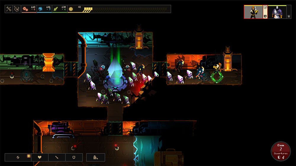 Roguelike-игра с примесью таких жанров, как РПГ, тактика, стратегия и tower defence, которые к тому же, связаны между собой аккуратно и гармонично. Выбираем несколько персонажей из предложенного списка, попадаем в подземелье и методично на каждом уровне открываем двери в поисках прохода к лифту к другому уровню. За каждой из дверей вы рискуете обнаружить, как врагов, так и что-нибудь ценное (а иногда и то, и другое). При этом в уже открытых комнатах могут появиться монстры, которые потопают к капсуле, на которой вы прилетели, и попытаются уничтожить имеющийся там кристалл. Если им это удается – вы проиграли.