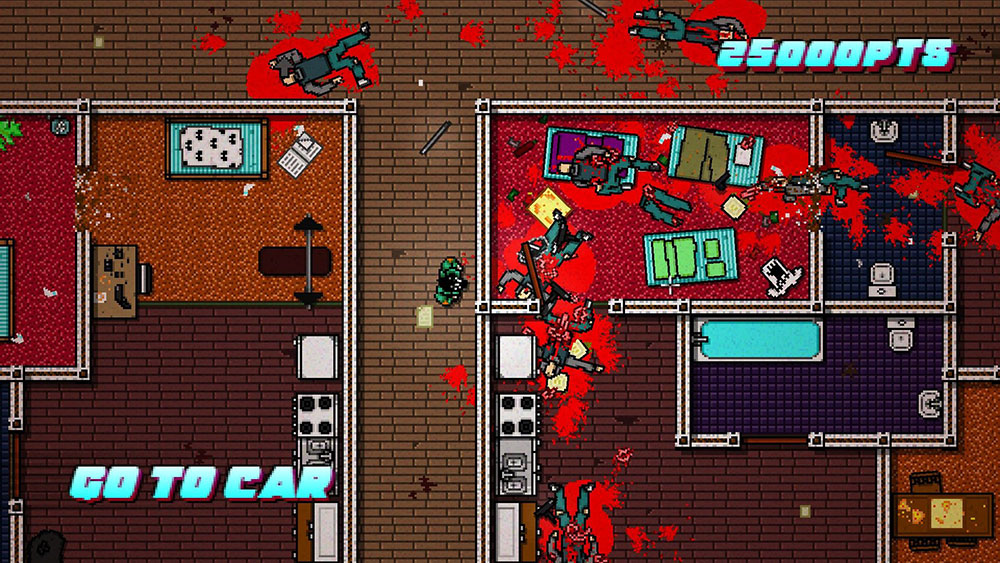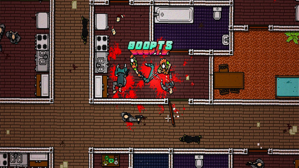 2D дилогия в жанре top-down action, источником вдохновения для которой служила культура восьмидесятых годов и фильм «Драйв». Игра поделена на главы, которые в свою очередь разделены на этапы. Задача каждого этапа – убить всех (за редким исключением), причем перед миссией мы можем надеть одну из нескольких масок, дающих определенные бонусы. Геймплей обеих частей построен на быстрой и четкой последовательности действий, ведущей к тотальному «выпиливанию» врагов. Замешкался хоть на секунду – ты мертв (герой погибает буквально от одного попадания), поэтому уровни приходится переигрывать по нескольку раз.