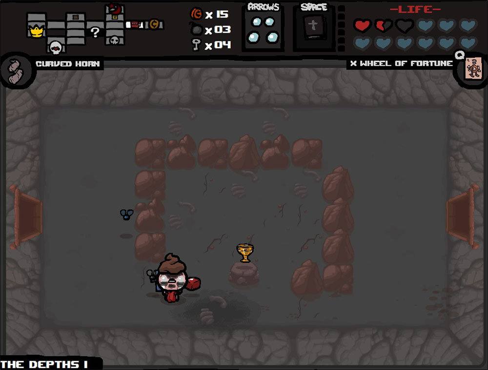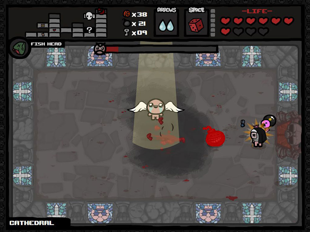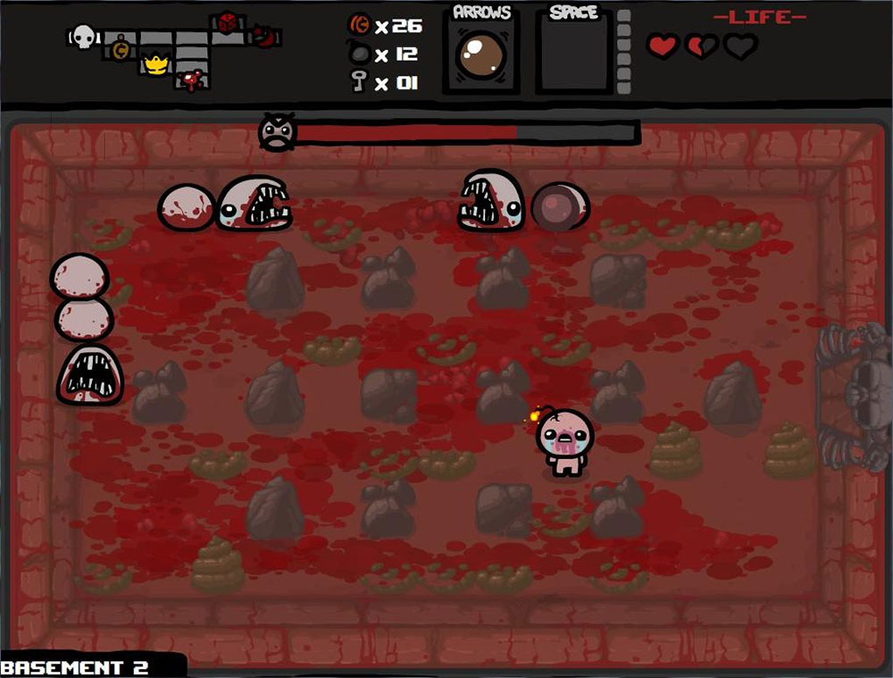 Инди-рогалик с видом сверху, с огромным количеством отсылок к библии и просто какой-то невероятной реиграбельностью. В игре несколько разблокируемых персонажей со своими характеристиками, однако, главный герой здесь мальчик Айзек, который попадает в подвальные подземелья своего дома, куда его загнала выжившая из ума мать.