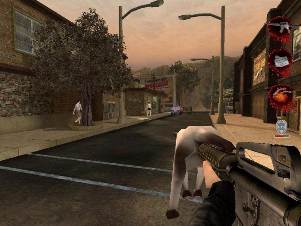 Интересна концепция игры, где обычные рядовые задачи (например, купить молоко или обналичить чек в банке) можно выполнять, как мирными путями, так и насильственными. При этом игра будет подталкивать вас ко второму пути (да и кому нужно мирное прохождение игры, когда здесь можно сжигать и обезглавливать людей, использовать кошек вместо глушителя и мочиться на представителей закона?).