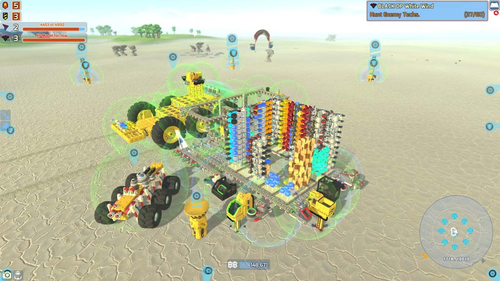 В игре очень удобный и объемный конструктор – деталей много, а вариантов их комбинирования еще больше. При этом часть блоков открывается за выполнение миссий, добычу ресурсов или победу над врагами. Помимо создания боевых машин игрок может создать себе из лишних блоков базу, которая станет заводом по переработке лишних ресурсов и последующей их продаже.