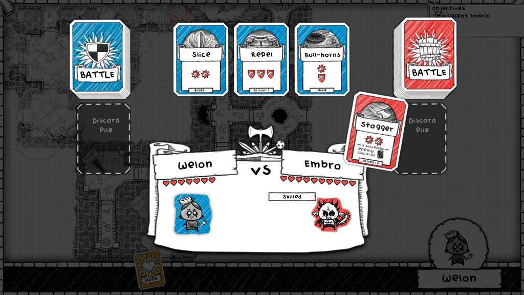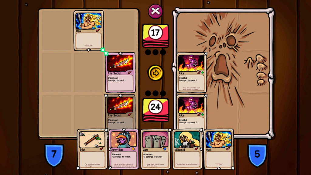 Колоды в игре небольшие и если карты в них заканчиваются – персонаж погибает. По этой причине в основе игрового процесса лежит своеобразное «жонглирование картами», когда одни персонажи используют атакующие карты, а другие возвращают карты из отбоя в руку. Зачастую в бою придется принимать тяжелые решения: что придержать, а что сбросить, что снова добавить в колоду или может лучше вообще спасовать.