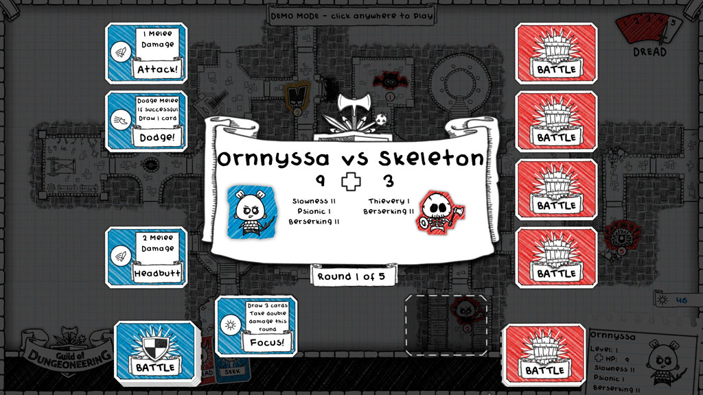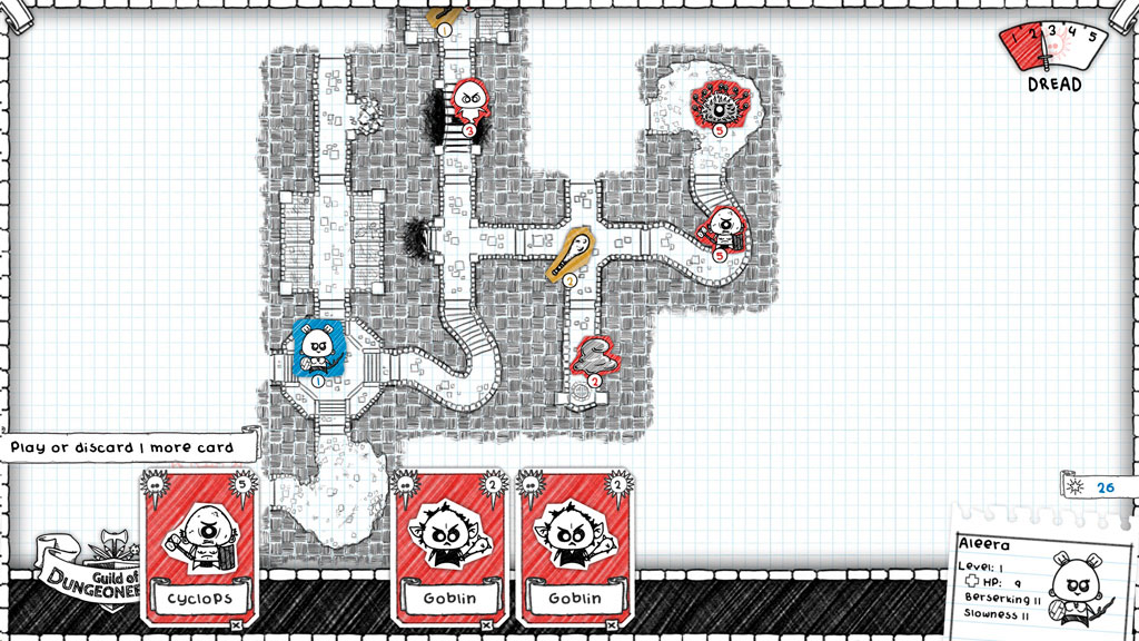 Одной из особенностей игры является то, что самим героем мы управлять не можем – он самостоятельно исследует подземелье и выбирает направление своего пути, при этом в бою мы берем ситуацию в свои руки, выбирая опять же из доступных в руке карт те, которыми лучше всего ответить на ход противника. Помимо прохождения подземелий в игре есть развитие собственной гильдии, которая постепенно откроет доступ к новым классам героев.