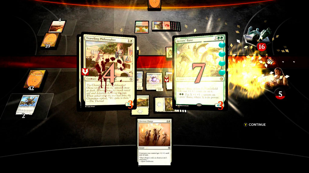 Коллекционная карточная игра в стиле Magic: the Gathering. Задача игроков – собрать колоду из разнообразных карт и побеждать оппонентов, выкладывая по очереди карты на поле боя. Для победы над противником нужно снизить его здоровье до нуля единиц, не дав ему сделать то же самое с вами. Множество игровых механик позволяет создавать собственные уникальные стратегии, в основе которых лежит использование тех или иных карт.
