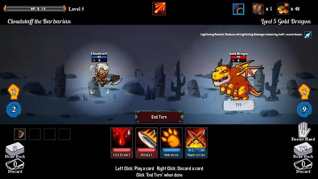 Рогалик с примесью карточной коллекционной игры, в котором есть 6 классов со своими классовыми картами, плюс общие карты, из которых нужно собрать колоду и, убивая разнообразных монстров, освободить мир. В игре есть несколько зон, к каждой из которых привязаны определенные монстры. В этих зонах могут находиться различные секреты, торговцы, бафалки и прочие бонусы. В конце каждого акта предстоит сражение с боссом.